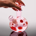 Bongs, beautiful bongs. Inspired by postmodern spotted glass, these pieces double as works of art. Proudly display as a statement piece with your favorite florals, or share and show off as a bold smoking accessory to enjoy with friends or solo. Crafted from borosilicate glass in eye-catching color combinations.